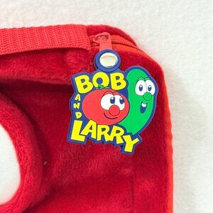This vintage Veggie Tales plush book and Bible cover, designed for children, features the vibrant and beloved Bob the Tomato. Constructed with durable velvet like material, it fits most standard-sized books and Bibles. The convenient carrying handle and interior pen/pencil holders enhance its functionality. New condition with all tags.