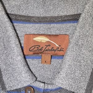 This vintage Bob Timberlake polo shirt is a cool look from the 90s. With short sleeves and a gray color, it's perfect for casual occasions. The shirt features an embroidered accent and is made from high-quality materials. It's a size L and has a regular fit.
