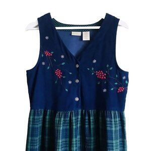 Vintage Bobbie Brooks Dress Womens Small Plaid Embroidered Berries Snowflakes