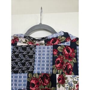 Vintage Bobbie Brooks Patchwork Rose Floral Plaid Buttondown Shirt, Plus 22W/24W