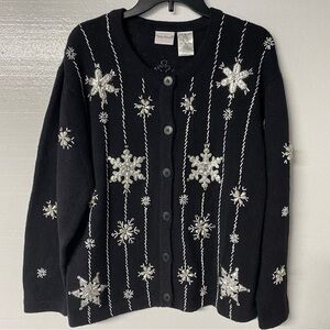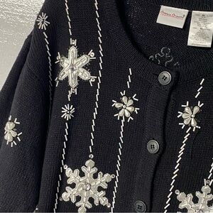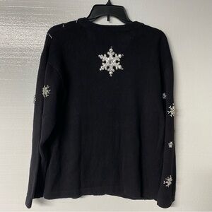 Vintage Bobbie Brooks Sweater XL Black Snowflake Embroidered Beaded Ramie Blend