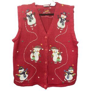 Vintage Bobbie Brooks Women's Sweater Vest Red Knit Christmas Snowman Large