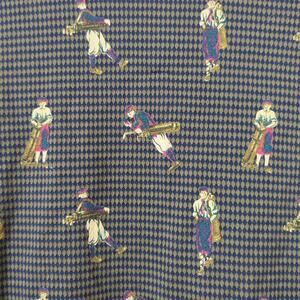 Vintage Bobby Jones Golfer Themed All Over Print Golf Polo Style Shirt Sz M Made in Italy Blue Beige