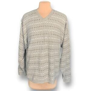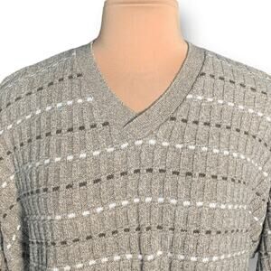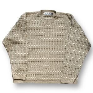 Vintage Boca Classics Sweater Hand Loomed Tan Horizontal Stripe Vneck Pullover