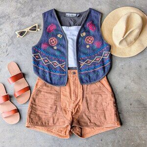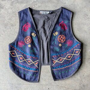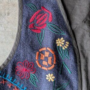 Vintage Body Xpressions Navy Embroidered Wool Felt Vest medium