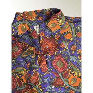 This Vintage Bogari Silk Blouse Women’s sz M Purple Orange Floral Loops&Button Shirt