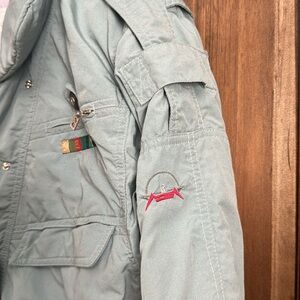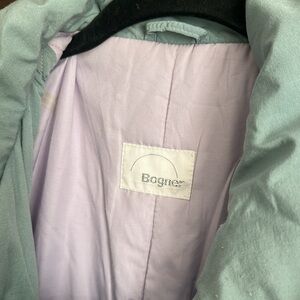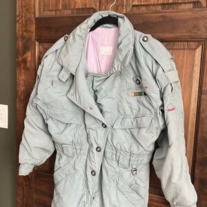 Vintage Bogner Ski Snow Suit women’s size 12. A few minor stains. The elastic isn’t stretchy anymore. Light blue teal color