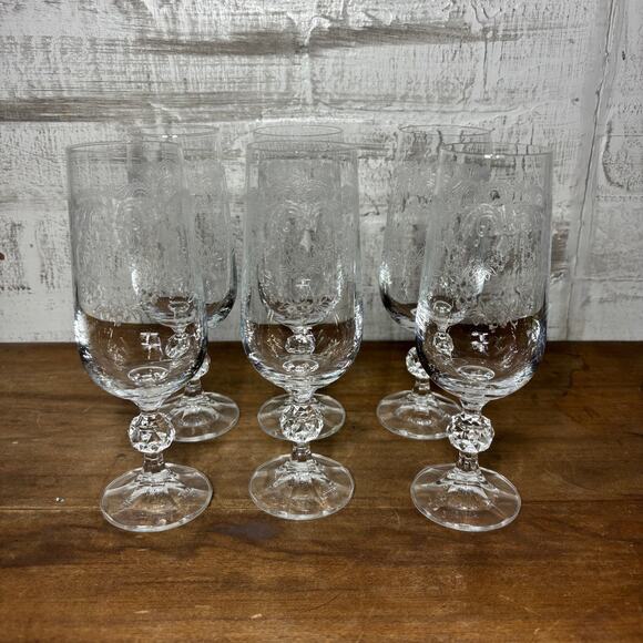 Vintage Bohemia Crystal Cascade Etched Champagne Flutes