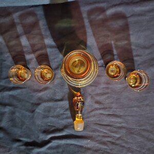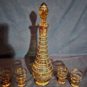 Vintage Bohemia Czechoslovakia Amber Gold Decanter Set (4 Glass / 1 Decanter)