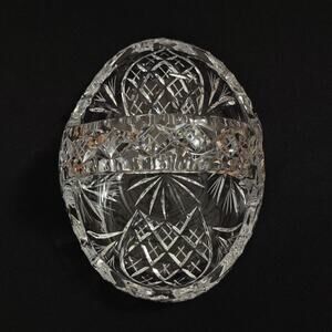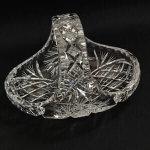 Vintage Bohemia Hand Cut 24% Lead Crystal Basket Candy Dish Czechoslovakia 6"