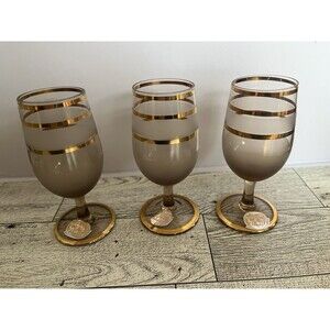 Up for sale are these Vintage Bohemia Smoke Gray Frosted Gold Band Cordial Glasses Set of 6 Czech.