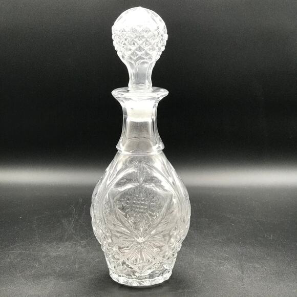 This vintage Bohemian crystal decanter, adorned with a stunning sunflower design, is perfect for holding wine, whisky, or spirits. It features intricate craftsmanship and a matching stopper that adds to its elegance. The decanter beautifully reflects light, highlighting its exquisite detailing and clarity. A timeless piece, it brings a touch of sophistication and charm to any bar or dining setting, ideal for collectors and connoisseurs alike.