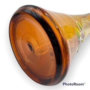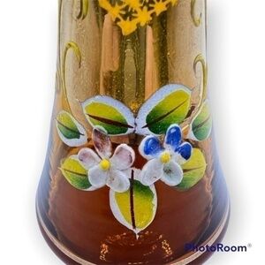 #vintage #bohemian #artglass #czechglass #budvase #floral #1970s #homedecor #glassware #amberglass #handpainted #enameled #0322