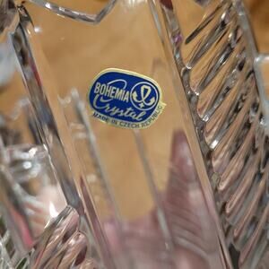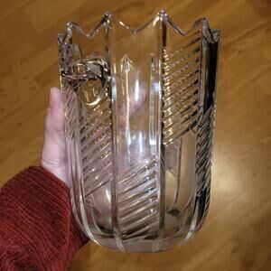 Vintage Bohemian Czech Cut Glass Ice Bucket Vase Etched Crystal 7"