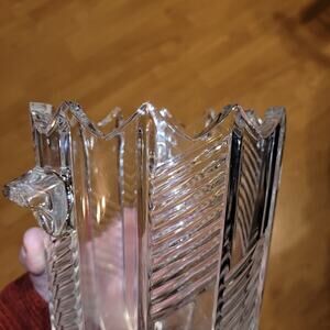 Vintage Bohemian Czech Cut Glass Ice Bucket Vase Etched Crystal 7" Victorian Fancy