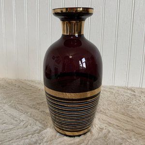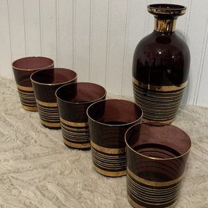 Vintage Bohemian Czech Glass Borske Sklo Amethyst Decanter & 5 Tumbler Glasses MCM
