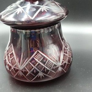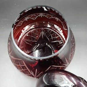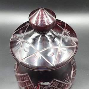 Vintage Bohemian Czech Ruby Red Cut to Clear Glass Canister Jar with Lid