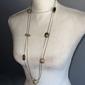 Beautiful vintage bohemian beaded necklace with a double serpentine chain with a lobster clasp closure. The chain is a mix of silver and gold. Like a ombré fading to the other color!