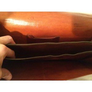 Incredible craftsmanship quality piece in the form of a large clutch, made of 100% leather with etched cutout design details inside out, in all of many compartments and features, including a built-in wallet