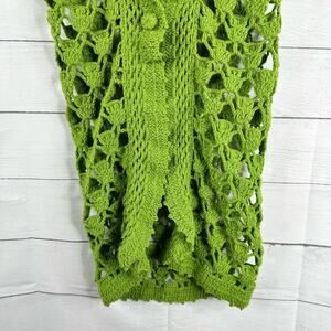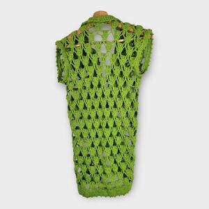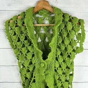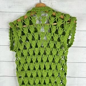 Vintage Bohemian Handmade Open Knit Crochet Vest Cardigan Green Womens Small