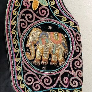 Vintage Bohemian Kalaga Burmese Sequin Elephant Vest