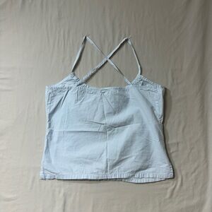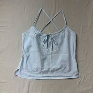Light Blue Womens Tank Top Criss Cross Tie Front Embroidered Vintage