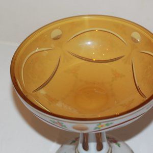 Vintage Bohemian Moser Czech White Cut To Yellow Compote Pedestal Bowl 7.5"