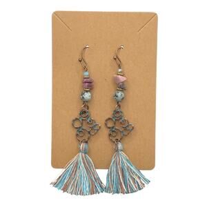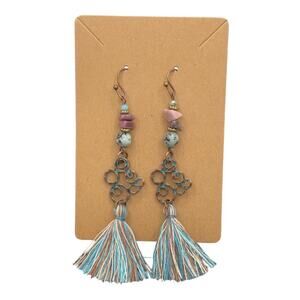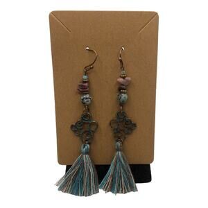 Vintage Bohemian Ornate Dangle Drop Long Turquoise Brown Tassel Earrings