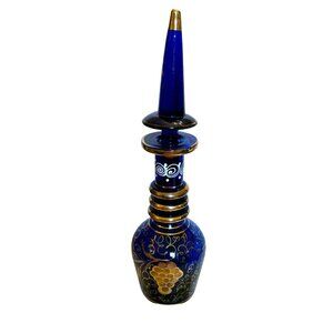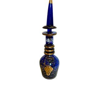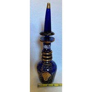 Vintage Bohemian Persian Hand-Painted Cobalt Blue & Gold Glass Decanter
