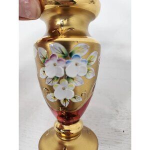 Vintage Bohemian Pink Glass Gold Overlay Floral Vase Raised Design Germany