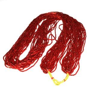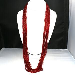 Vintage Bohemian Red Glass Bugle Bead Necklace, 24 Strands, No Clasp, 1970s