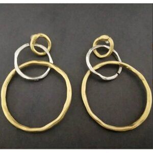 Vintage Bohemian Style 18K Golden Plated Two Tone Hollow Circle Hoops