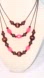 Vintage Bohemian Style 3 Strand Wooden Brown Beaded Necklace with Pink Beads