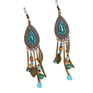 These vintage oval leaf earrings are a stunning addition to any bohemian or statement outfit! The intricate detailing of the leaves gives them a unique and elegant look, and the long tassel beads add a playful touch. They are perfect for any occasion, whether it's a casual day out or a formal event. These earrings are also versatile - they can be paired with a simple outfit to add a pop of color, or with a more elaborate outfit to complement its style. With these earrings, you'll be sure to turn heads and make a statement!