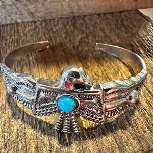 Vintage Bohemian Thunderbird Bangle Bracelet with Turquoise Accent, Gift-Ready