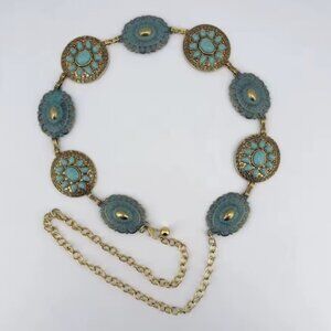 Vintage Bohemian Turquoise Stone Medallion Link Belt – Adjustable