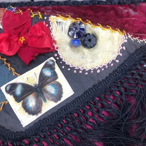 Vintage Boho Art to Wear Hand Crafted Patchwork Butterfly Evening Bag