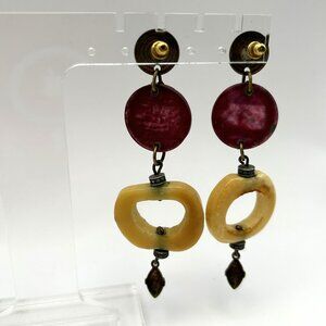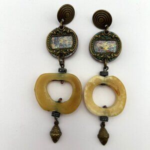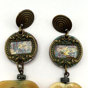 Lot of 2 pairs pierced bold vintage statement earrings. Artisan/studio style with tribal and bohemian design influence.