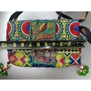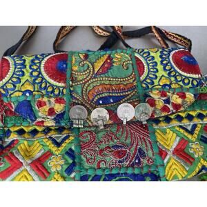 Vintage Boho Banjara Crossbody Handbag Festive Sequin Embroidery Coin Accent