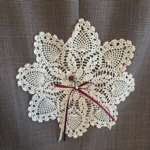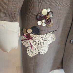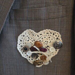 Embellished with buttons, doilies and faux pearls