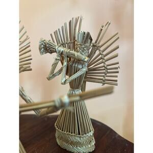 Add a touch of rustic charm to your holiday decor with this set of 4 vintage corn husk angels! Each angel is handcrafted with delicate details and holds a different instrument, ready to bring a symphony of joy to your home. These unique angels are perfect for hanging on your Christmas tree, adorning a mantel, or adding a whimsical touch to any room. They evoke a nostalgic feel and celebrate traditional craftsmanship. They are in excellent condition, ready to bring holiday cheer to your home for years to come!