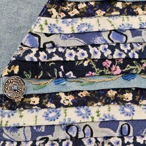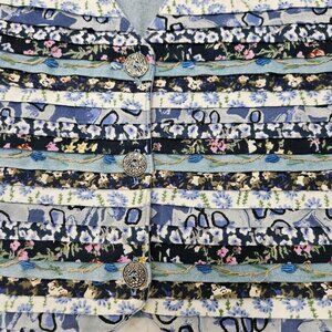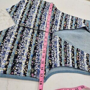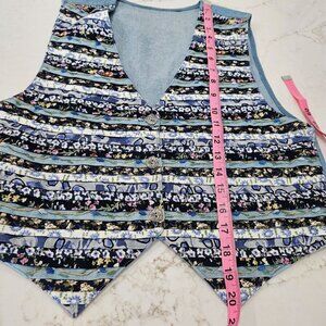 Vintage Boho Cottagecore Large Floral Patchwork Stripes Vest Embroidered Blue