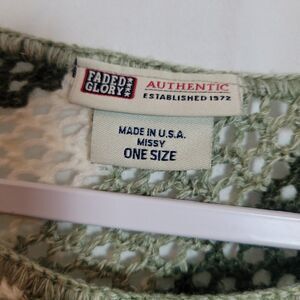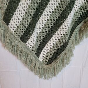 Vintage Boho Crochet Fringe Poncho One Size S-L Green Stripes Western USA Made