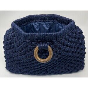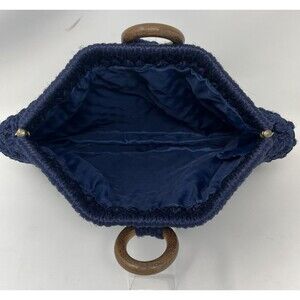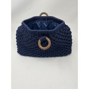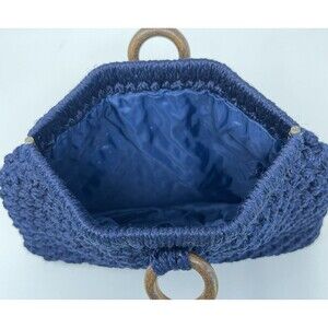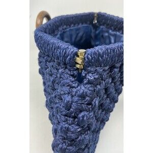 This vintage handbag is a one-of-a-kind piece that will surely catch the attention of anyone who sees it. The charming blue color and crochet accents make it a perfect accessory for any occasion, whether it's a formal event or a casual day out. The tote features a knitted pattern and a clasp closure, with a small size that makes it easy to carry around.