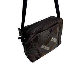 Vintage Boho Crossbody Double Zip Bag Womens Brown Patchwork Leather Purse