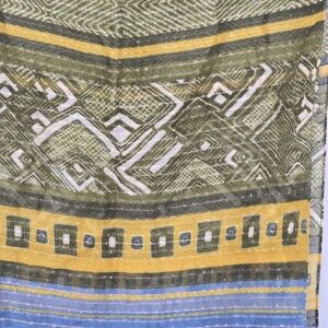 Vintage Boho Design Inspired Olive Green Yellow Wool Blend Scarf Made In Italy