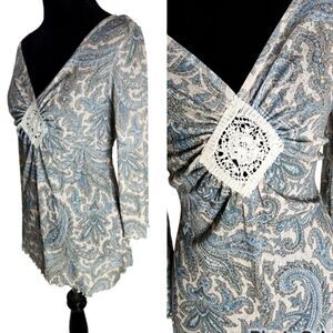 🌸Vintage Boho Dreamer Blue Paisley Lace Bellsleeved Tunic Top 🌸