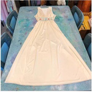 Beautiful vintage retro boho nightie with floral embroidery and lovely turquoise piping. Flattering empire waist, ties at the back for and adjustable fit, and super soft!