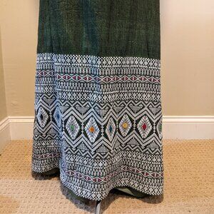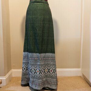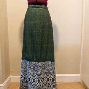 Vintage Boho Ethnic Woven Design Olive Green Maxi Skirt XS/S