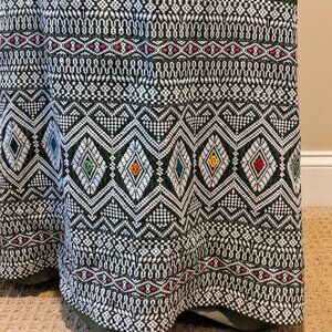 Gorgeous vintage boho-style ethnic woven maxi skirt in a deep dark olive green shade. Features a side zipper for easy wear and a full lining that’s slightly longer than the skirt for added comfort and a unique layered look. Flowy, elegant, and perfect for earthy, vintage-inspired outfits.